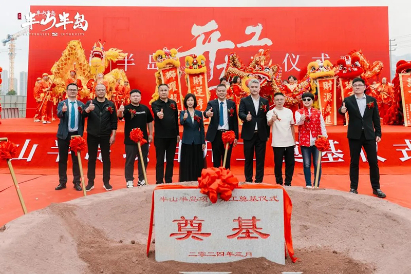 在振奮人心的致辭後,奠基儀式正式啟動,現場鼓樂齊奏、彩煙齊放、禮炮齊鳴,氣氛喜慶而熱烈。在眾人的矚目下,受邀而來的領導和嘉賓們共同為項目奠基培土,將象征堅實穩固、根基永恒的奠基石植入土壤,半山半島項目正式開工。現場鼓樂齊奏、彩煙繚繞、禮炮齊鳴,氣氛喜慶而熱烈,與來賓共同見證這一榮耀時刻。在開工禮炮的轟鳴聲中,典禮圓滿禮成。