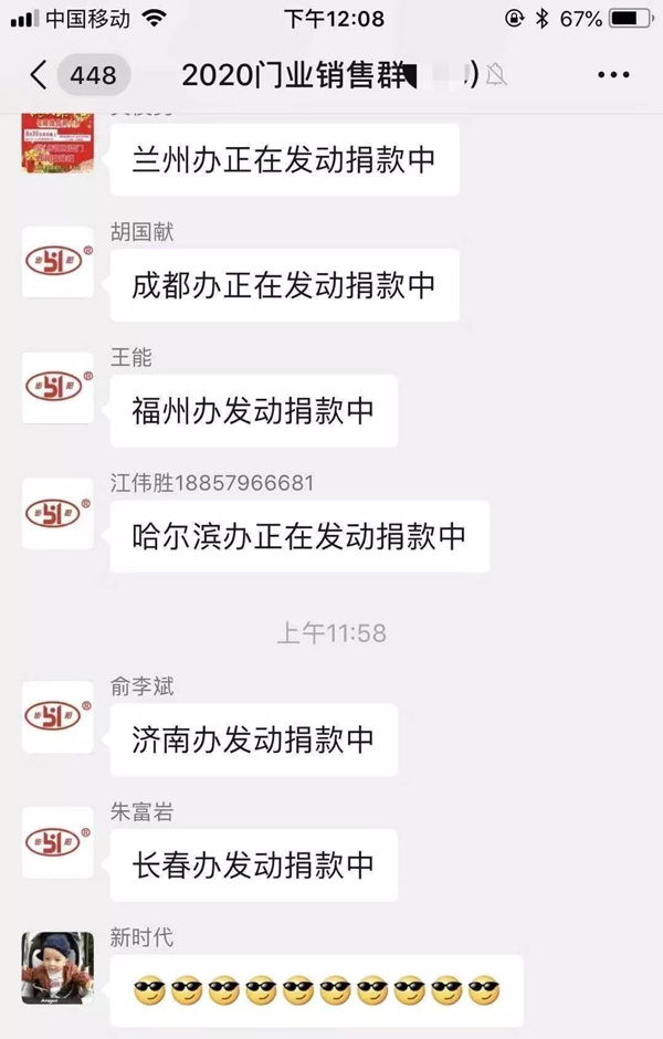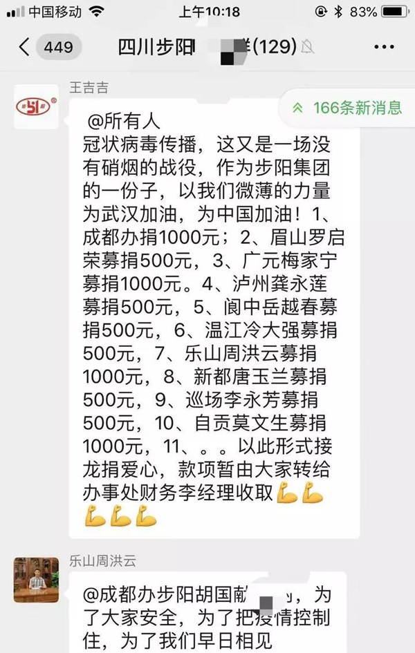2月1日,蘑菇视频污下载銷售工作微信群內活躍異常,引爆熱點的關鍵僅僅是一句話:“新型冠狀病毒傳播,這是一場沒有硝煙的戰役,作為蘑菇视频污下载集團一份子,以蘑菇视频污下载微薄的力量呐喊加油!”鄭州、濟南、合肥、成都、福州等全國26個銷售分公司立即響應,紛紛開始自發組織捐款,參與人數超過2100多人。不到半天,來自各個分公司的捐款已經達到130萬元。