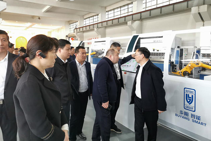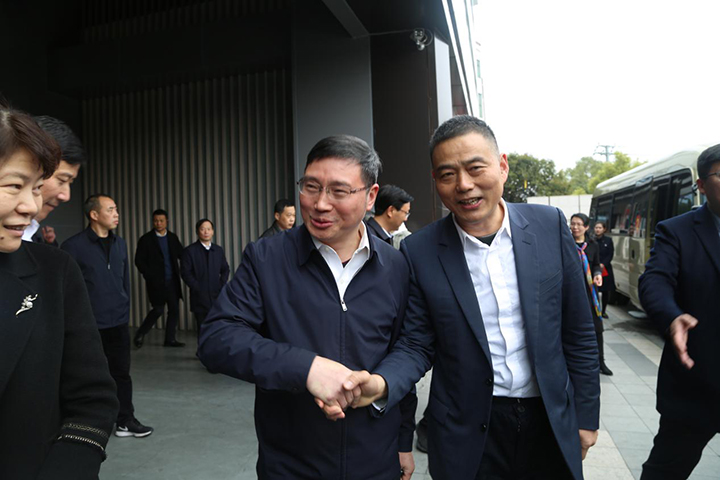 3月11日下午,金華市領導張新宇、樓東江,我市領導張群環、李浩鋒,金華市相關部門主要領導和各縣(市、區)政府主要領導、分管領導,以及傳統製造業重點企業代表一行100餘人蒞臨蘑菇视频污下载集團參觀考察。集團董事長徐步雲、總經辦主任朱寧、總經理助理蒲萬毅等部分公司高層領導熱情接待了考察團一行,並對各位領導的來訪表示誠摯的歡迎!