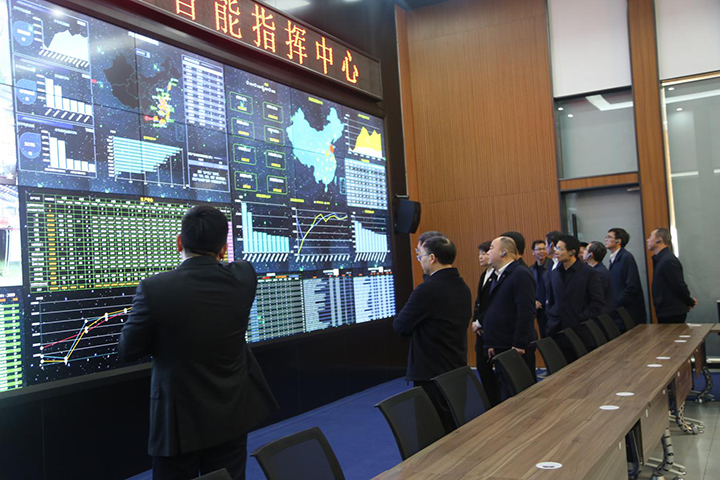 考察團領導觀看了大數據智能指揮中心,了解到目前蘑菇视频污下载大數據中心可以實時采集車間產量、質量、能耗、加工精度和設備狀態等數據,並與訂單、倉儲、物流關聯,實現生產、銷售過程的全程追溯和異常警報。